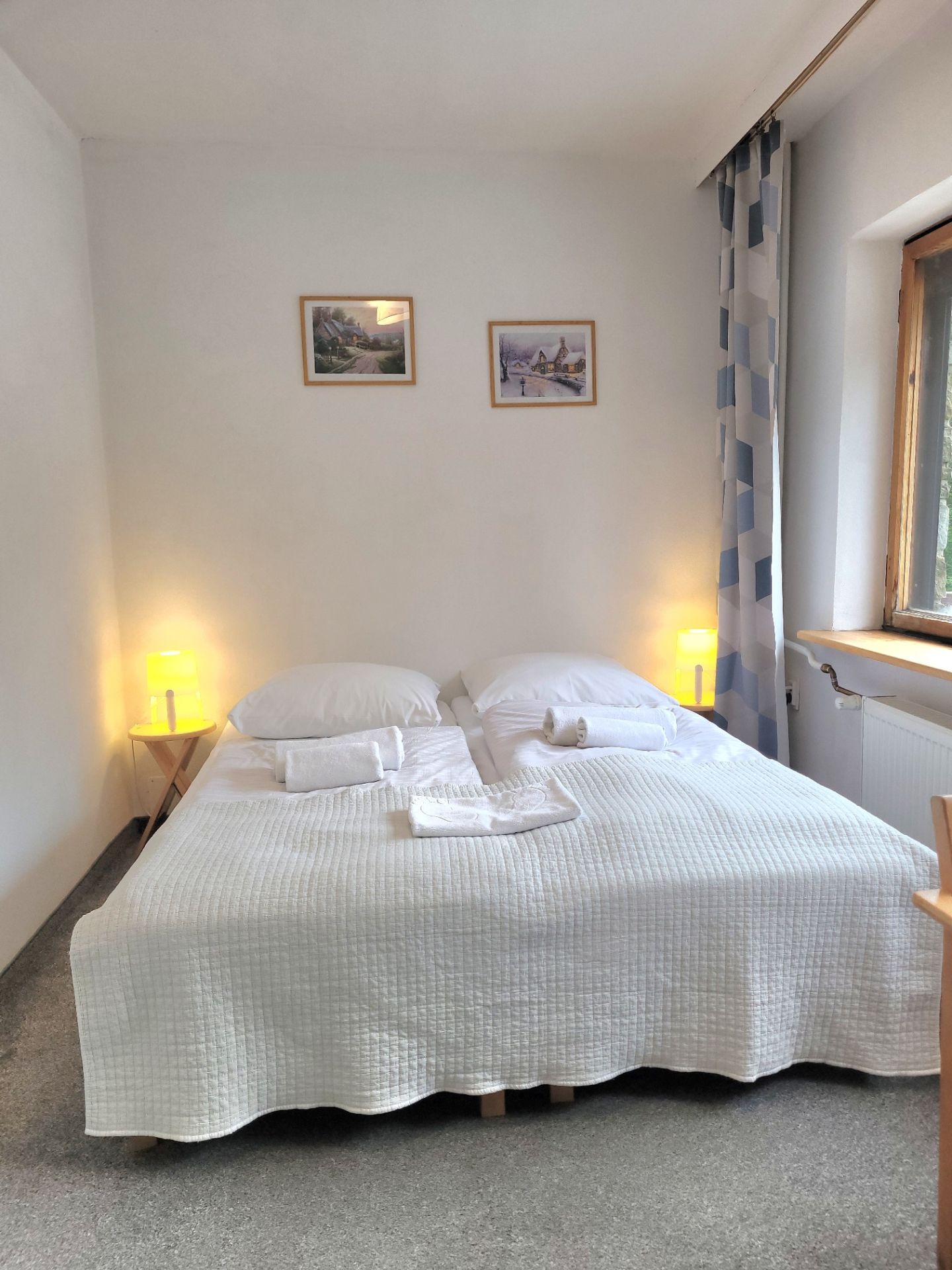 W pokoju 2-osobowy nr 13 znajduje się łóżko małżeńskie, 2 stoliki nocne, stolik z 2 krzesłami, pomocnik kuchenny, szafa, telewizor z płaskim ekranem oraz wyjście na balkon. Ponad to na wyposażeniu są: czajnik, lodówka, sztućce, szklanki, talerze oraz ręczniki. Łazienka z kabiną prysznicową oraz oddzielna toaleta, znajdujące się poza pokojem, na ogólnodostępnym korytarzu na tym samym piętrze są wspólne dla pokoju nr 13 i 14.