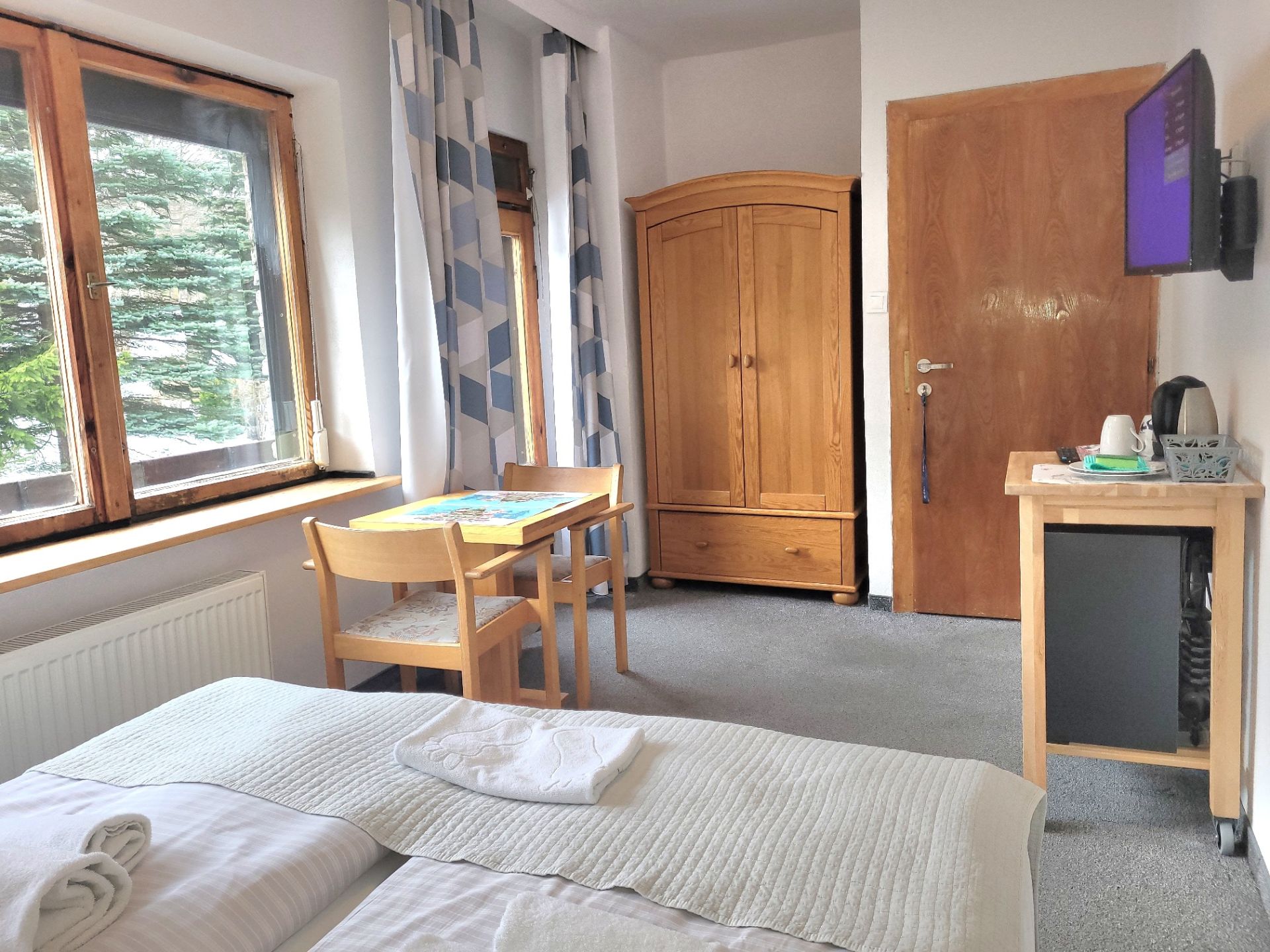 Wszystkie pokoje w pensjonacie posiadają wysoki standard wyposażenia i przyjazną aranżację. Wyposażone są w duże łóżka małżeńskie, czajniki elektryczne oraz TV.